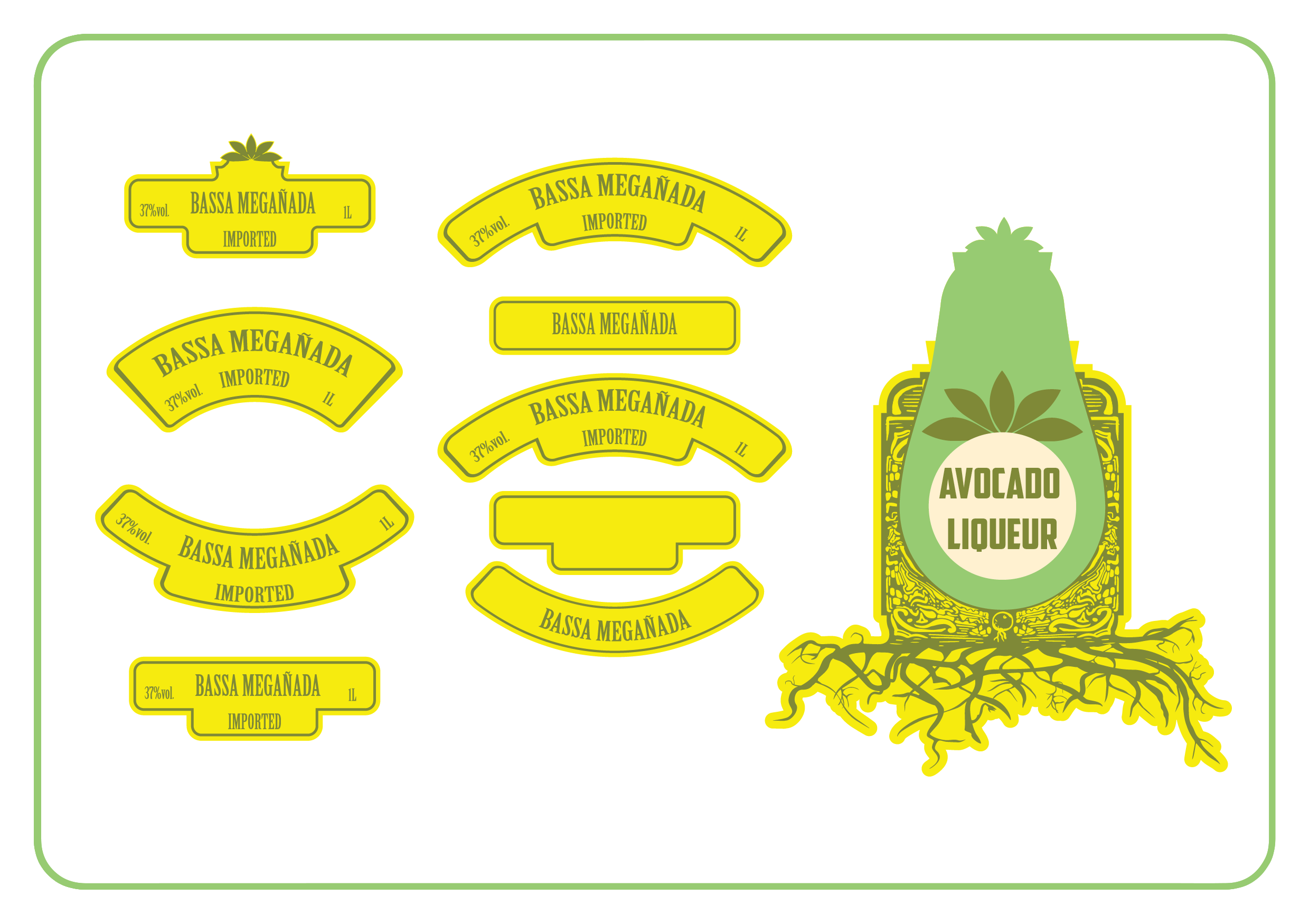Avocado Liqueur - branding project. Fulfilling customer's design requirements. (vector)